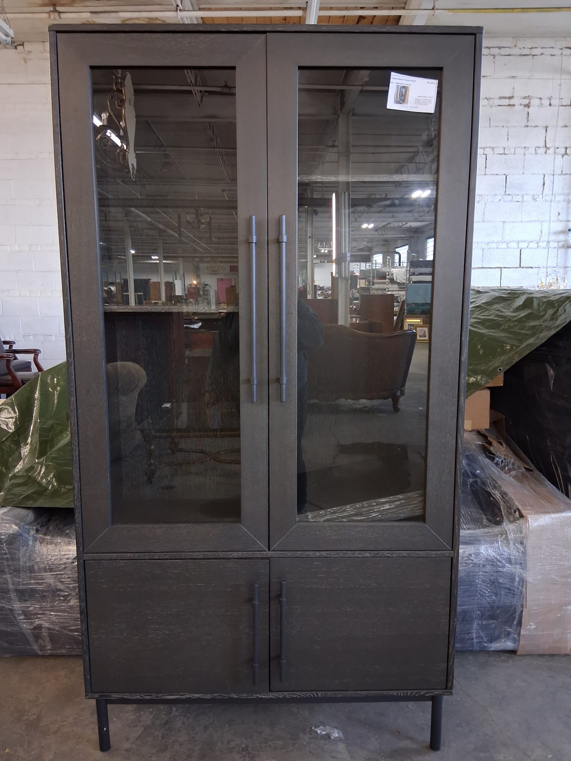 Sleek black display shelf by Arhaus featuring clean lines and versatile storage, perfect for books, décor, or styled vignettes.