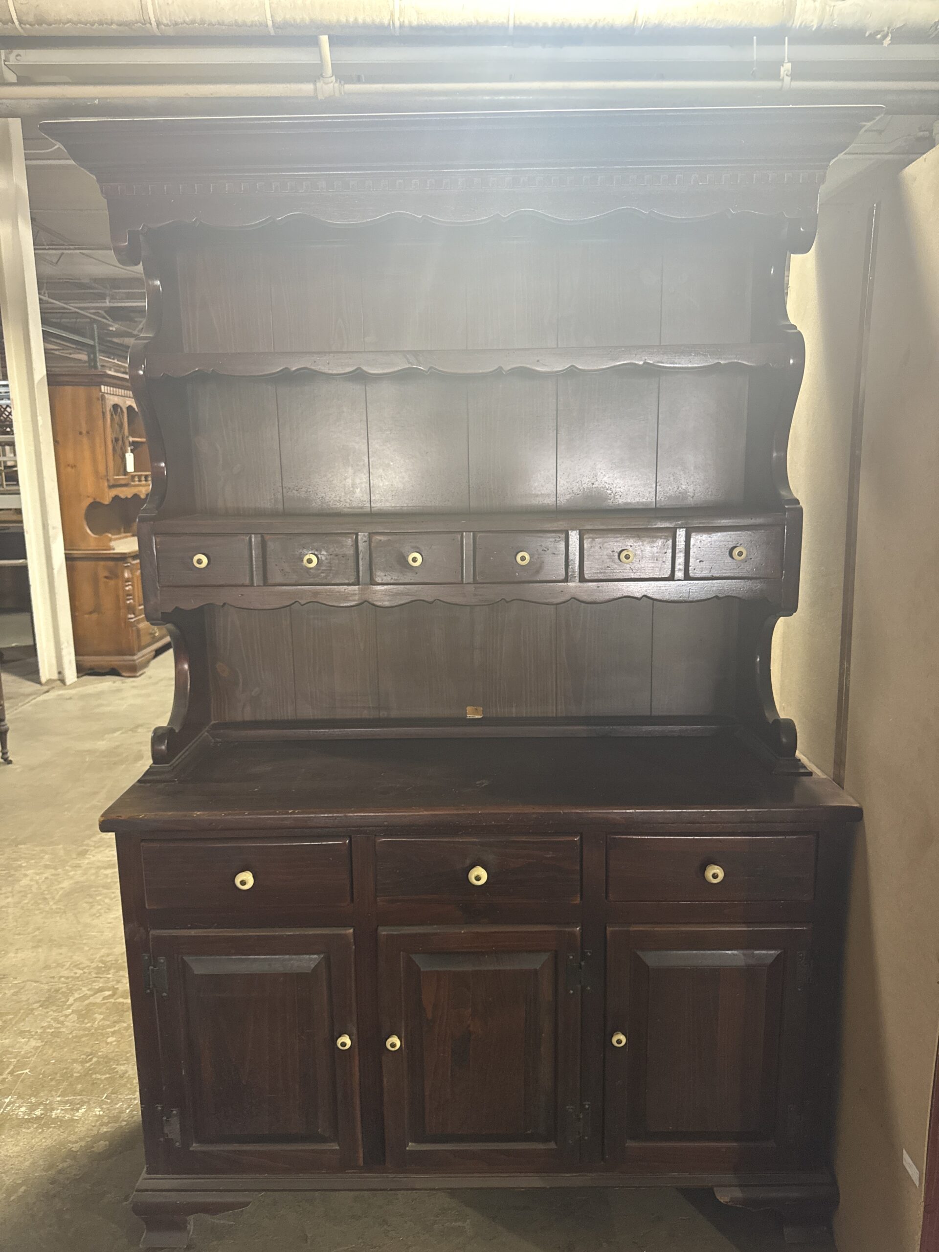 Beautiful and sturdy wood armoire with paneled doors and interior shelving. Great for extra storage in a bedroom, hallway, or living room.